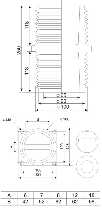 TG4-10Q/128(100×100)套管適用于額定電壓(10~35)kV, 頻率(15~60)Hz的三相交流系統(tǒng)電站和變電所配電裝置上 ,供導(dǎo)電部分穿過隔板、墻壁或其它接地物,起絕緣支持和外部導(dǎo)線(母線)間固定連接之用。