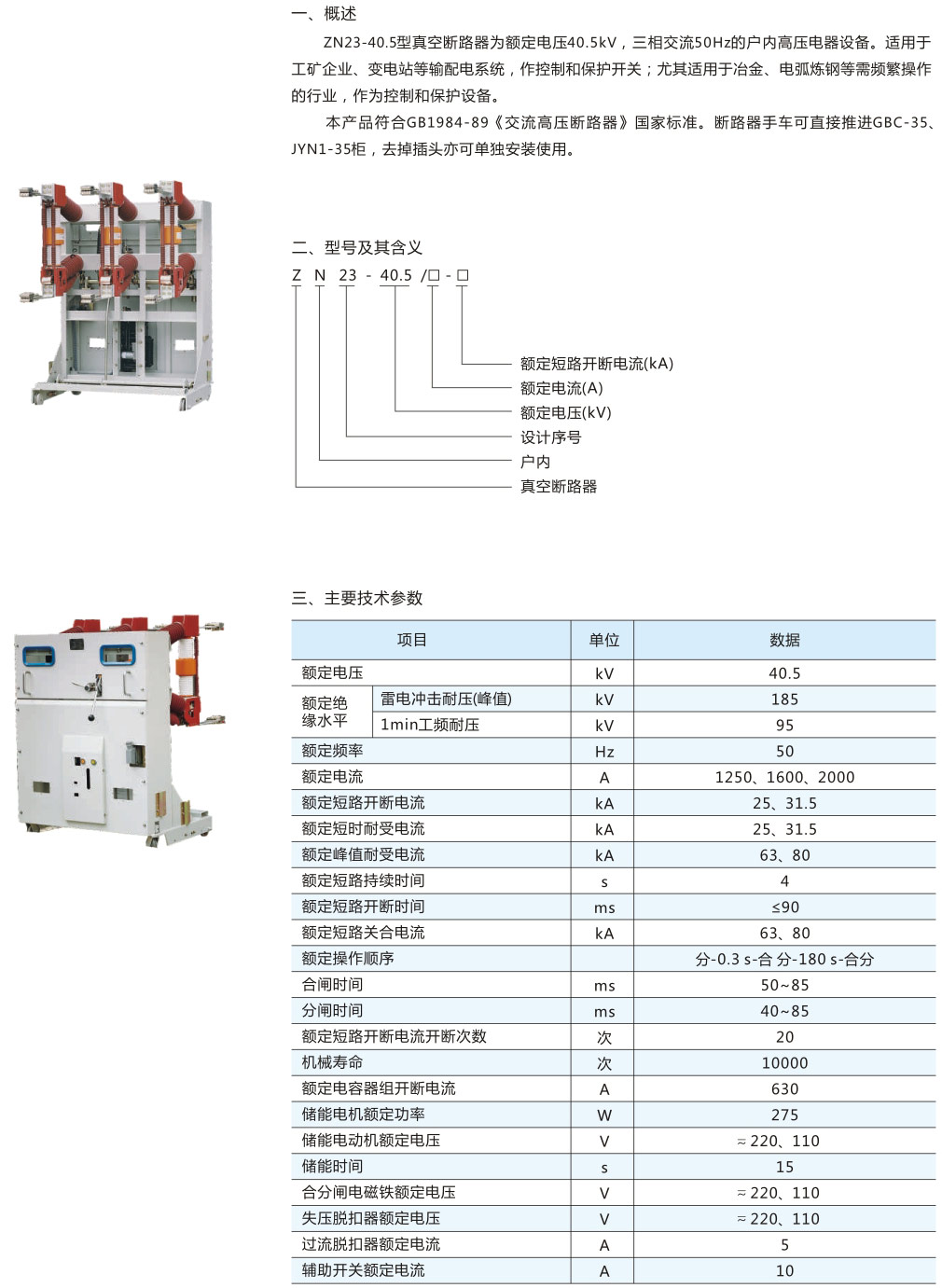 • ZN23-40.5KV戶內(nèi)手車式真空斷路器