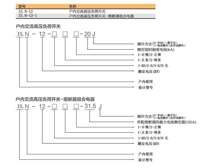 IS.N-12系列戶內(nèi)交流高壓負(fù)荷開關(guān)是采用壓氣式滅弧原理,由于其獨(dú)特的結(jié)構(gòu)設(shè)計(jì),能夠充分利用開關(guān)分閘過程產(chǎn)生的壓縮空氣吹滅電弧。性能滿足GB3804-2004《3.6kV~40.5kV 高壓交流負(fù)荷開關(guān)》、GB16926-2009《高壓交流負(fù)荷開關(guān)—熔斷器組合電器》國家標(biāo)準(zhǔn)的要求。適用于交流12kV, 頻率50Hz 的高壓網(wǎng)絡(luò)中,作為合、分負(fù)載電流, 過載電流及關(guān)合短路電流之用, 與高壓限流熔斷器及脫扣裝置組合成IS.N-12-1 系列戶內(nèi)交流高壓負(fù)荷開關(guān)-- 熔斷器組合電器,可以可靠開斷額定短路電流。