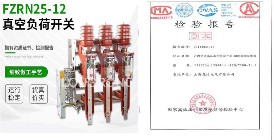 FFZN25、FZRN25型真空負(fù)荷開關(guān)和組合電器在靜觸頭與動(dòng)導(dǎo)電筒之間有耐高溫、強(qiáng)絕緣、且阻燃的透明玻璃罩、有效地保障了設(shè)備安全運(yùn)行和人身安全。負(fù)荷開關(guān)與接地開關(guān)設(shè)有可靠的機(jī)械連鎖,既保證了安全又方便了檢修。