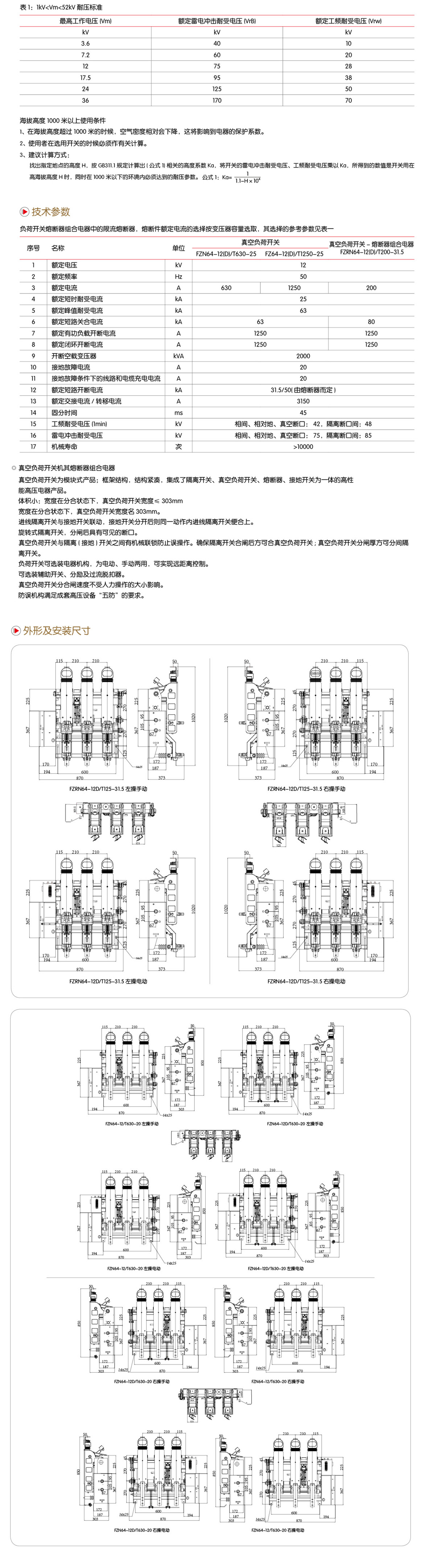 FZN64系列負(fù)荷開關(guān)及其組合電器是適用于城市電網(wǎng)改造和建設(shè)需要的高壓電器產(chǎn)品。性能符合GB/T3804《3-6KV交流高壓負(fù)荷開關(guān)》和GB/T16926《交流高壓負(fù)荷開關(guān)-溶斷器組合電器》標(biāo)準(zhǔn),主要技術(shù)參數(shù)已屬同類產(chǎn)品的優(yōu)秀水平。本產(chǎn)品廣泛用于工廠、學(xué)校、住宅小區(qū)、高層建筑等三相交流、系統(tǒng)電壓3.6-12KV額定頻率5Hz的配電系統(tǒng),作為接受和分配電能之用,可用于環(huán)網(wǎng)開關(guān)柜、箱式變電站、開閉所等配電設(shè)備中。