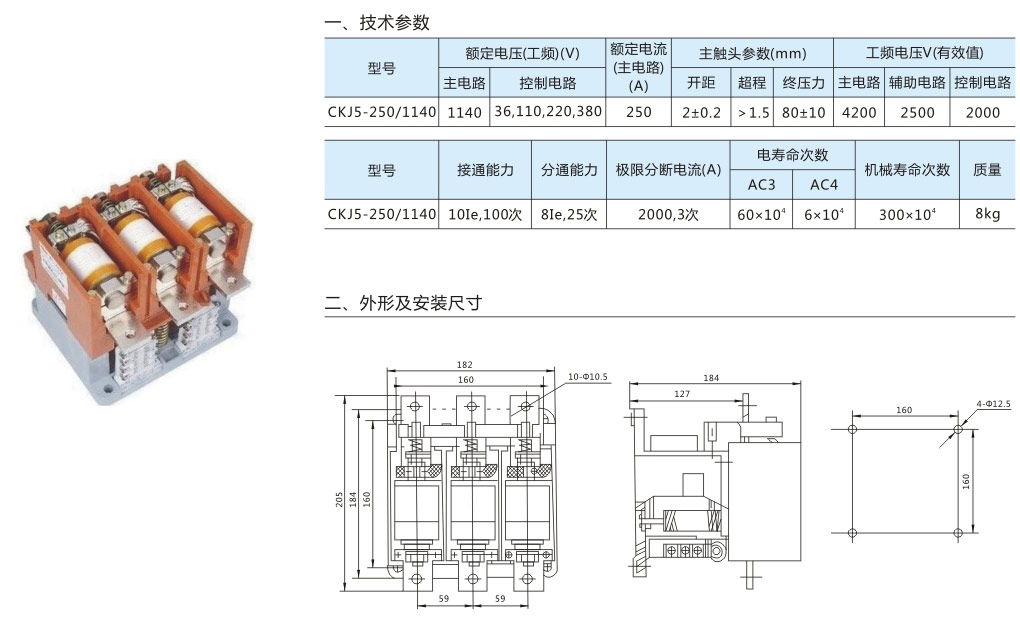 • CKJ5-250型交流真空接觸器