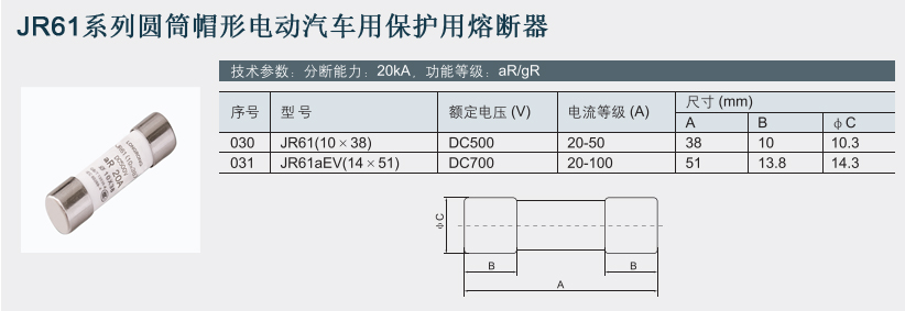 JR61(10*38)系列電動(dòng)汽車用圓筒帽形熔斷器
