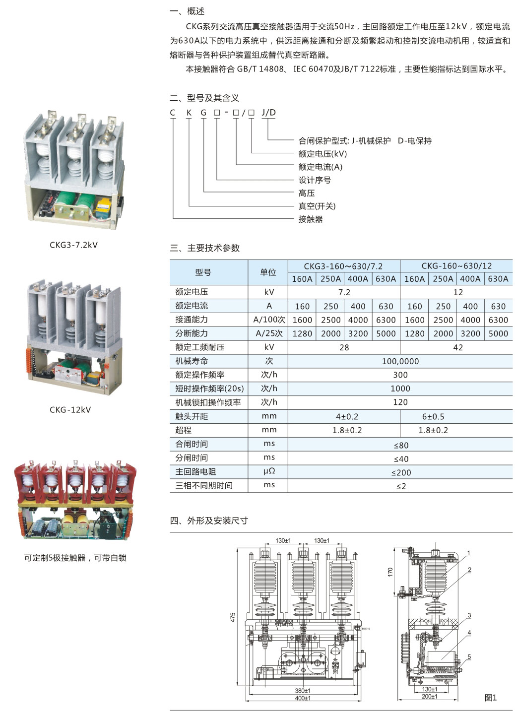 • CKG-160,250,400,630/7.2(12)系列戶內(nèi)交流高壓真空接觸器
