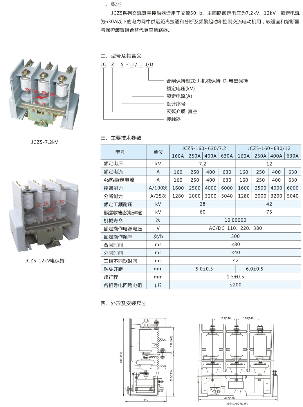 • JCZ5-7.2KV,JCZ5-12KV交流高壓真空接觸器