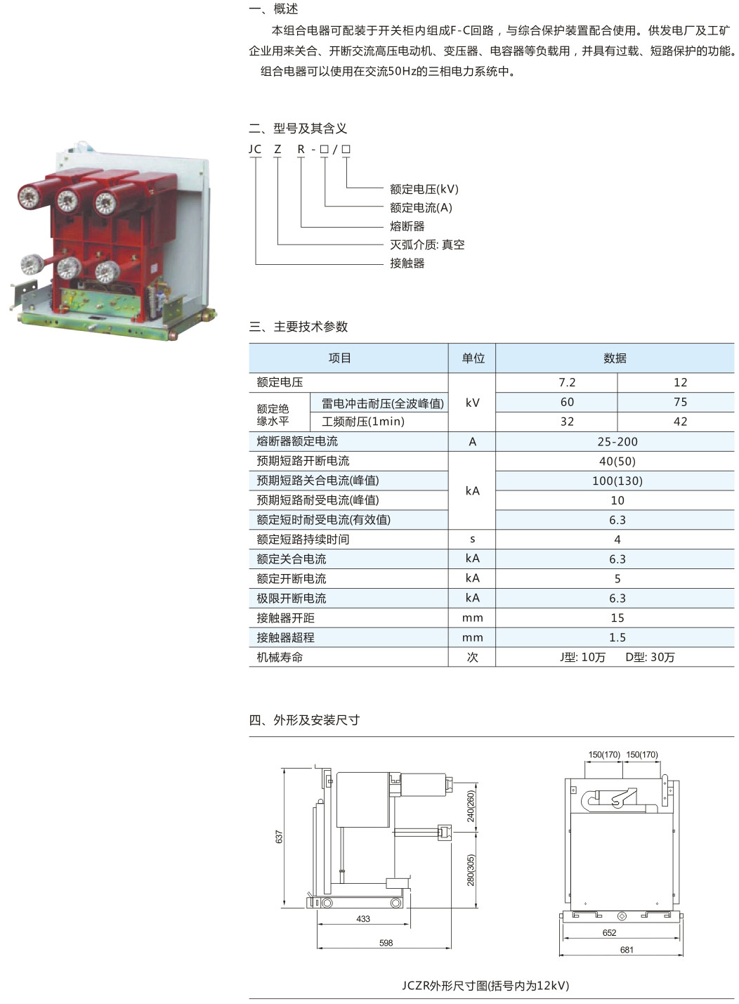 • JCZR戶內(nèi)高壓真空斷路器-熔斷器組合電器