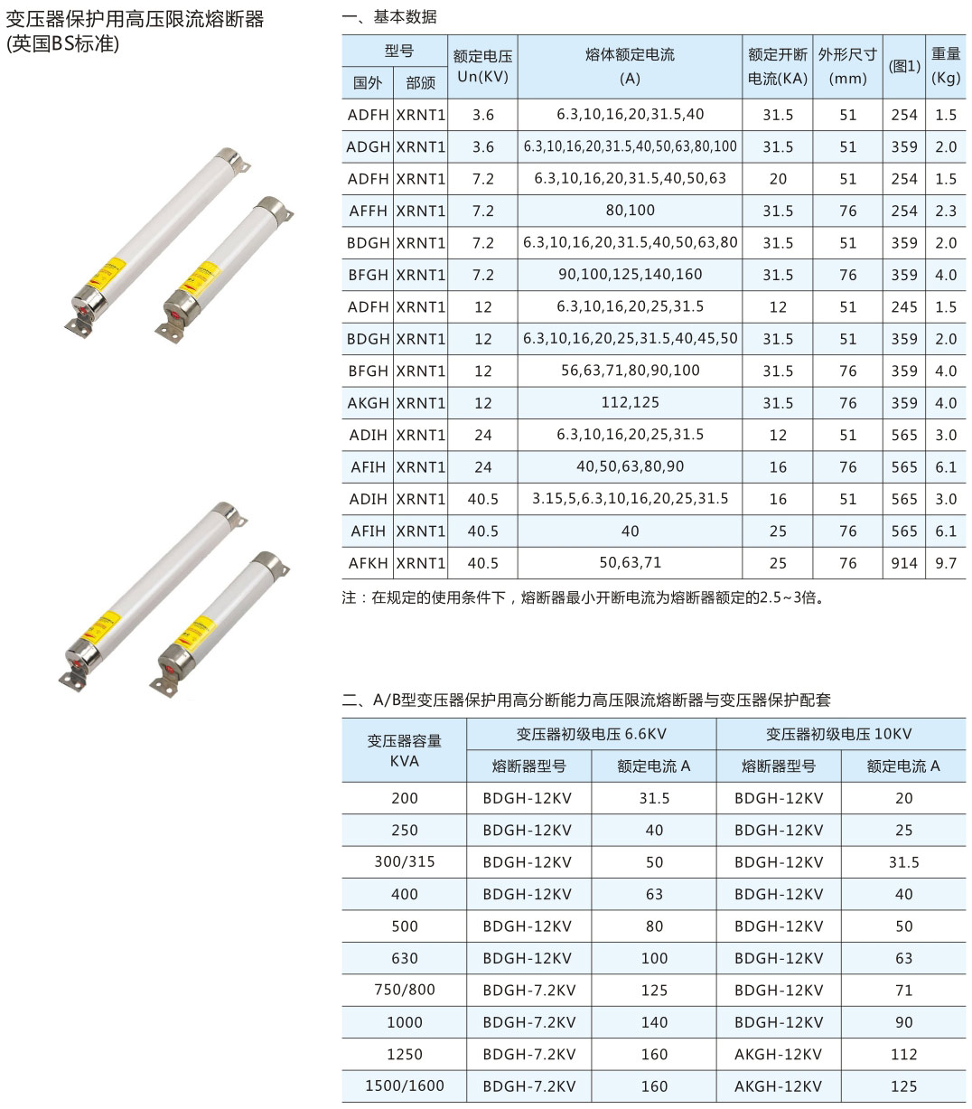 • XRNT1系列變壓器保護用高壓限流式熔斷器(英國BS標準)