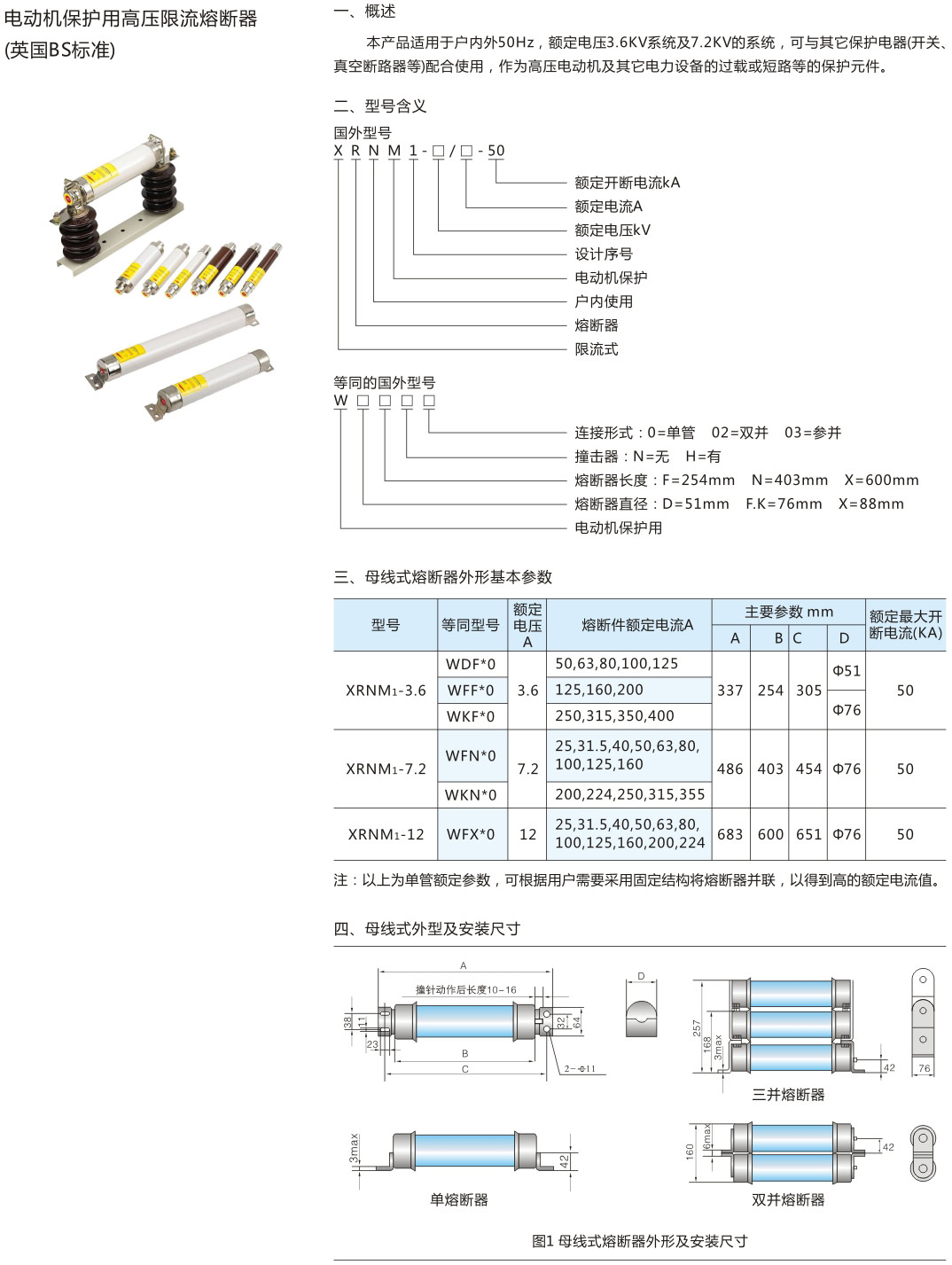• XRNM1電動(dòng)機(jī)保護(hù)用高壓限流熔斷器(英國(guó)BS標(biāo)準(zhǔn))